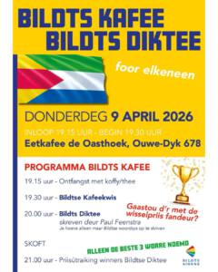 Op donderdeg 9 april 2026 wort in eetkafee ‘De Oasthoek’ fan Rintsy Kas an ’e Ouwe-Dyk 678 ’t Bildts diktee…